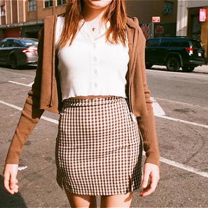 BM的标志性风格是露肚脐的短上衣、格子短裙、小外搭,配着简约的印花和字母,走青春、田园路线。它的消费者基本都是20-25岁的女孩。