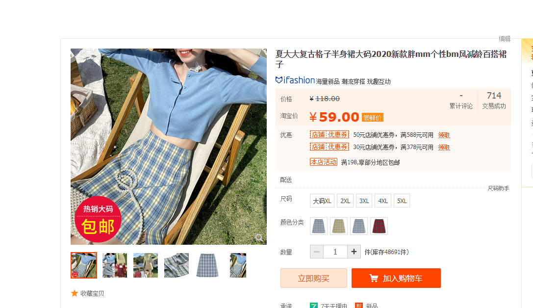 杭州一大码女装电商公司对界面时尚表示,大约从3月中下旬开始,旗下女装店开始做BM风格的衣服,其实就是短款的上衣搭配半身裙或短裤。“这些款式卖得还不错,大码女生也有上半身不胖的,可以尝试,就看敢不敢穿了。”现在打开淘宝,还能看到教大码女孩穿搭出BM风的内容。