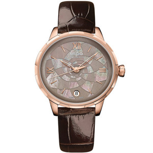 瑞士美度表RAINFLOWER花淅系列焦糖棕款长动能珍珠贝母女士腕表