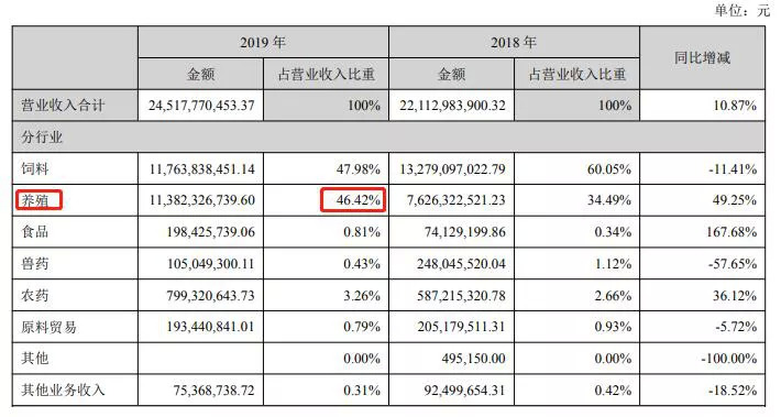 2019年,牧原股份实现营业收入约202.21亿元,同比增长51.04%;温氏股份实现营业收入约731.2亿元,同比增长27.75%;正邦科技生猪养殖营收113亿,同比增长49.25%。