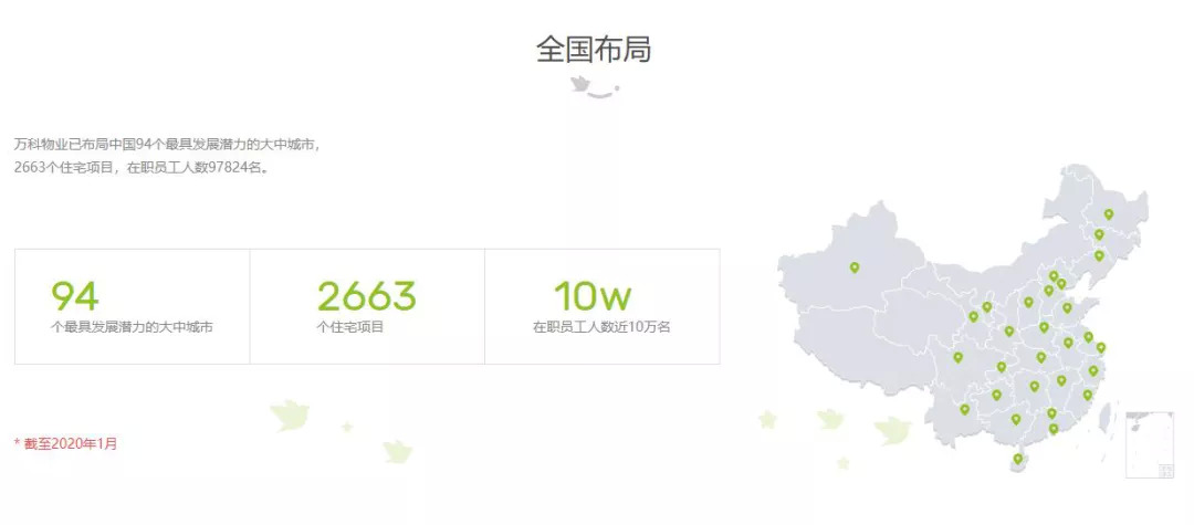 万科物业已布局中国94个大中城市,服务2663个住宅项目,服务人口超过1500万。
