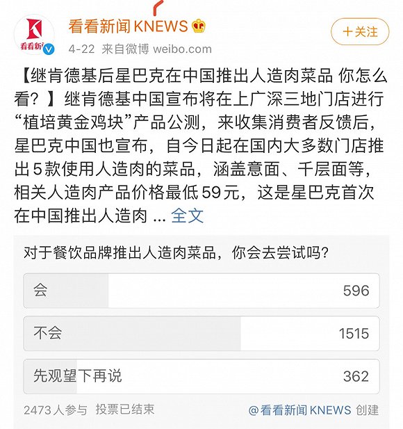 如今,星巴克、肯德基等连锁餐饮入局,资本和大公司的助推,消费者观念的改变,都让“植物肉”有潜力变成流行。但对于中国市场而言“人造肉”仍属于新鲜事物,不禁让人产生很多疑问,未来“人造肉”真的能成为消费常态吗?