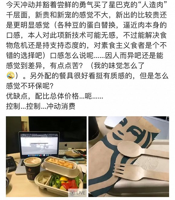 4月21日,星巴克宣布,首次将植物膳食品牌Beyond Meat引入中国内地市场,并推出5款全新植物肉产品,全国门店有售,最低价格59元。由李宇春担任“星善食”主义菜单的形象大使。