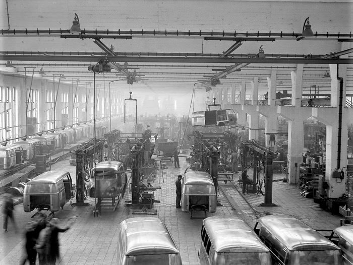 7. 目前公认的大众T1最初生产时间为1950年3月,而实际上早在1949年5月19日,当时新上任不久的大众集团CEO海因里希·诺德霍夫(Heinz Nordhoff)就批准了T1的生产计划。同年11月12日,相关生产线开始启动,共推出客货两用(Kombi)和商用(Panel)两种车型。自1950年起,各种小型巴士车型被陆续添加到生产序列中。当时大众工厂每天可以生产10台普通汽车,然而投产第一年,T1车型的总产量达到了9541台。