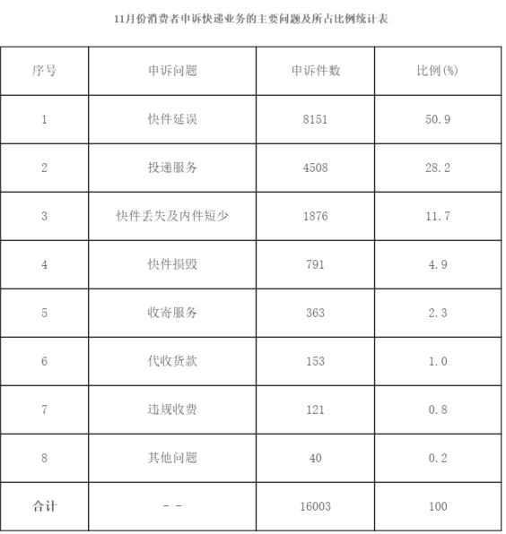 ▲国家邮政局关于2012年11月邮政业消费者申诉情况的通告