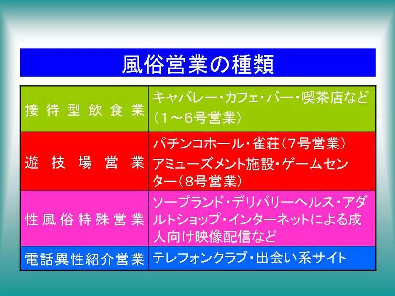 现在的日本风俗业大致分为两种,一种就是有店铺的风俗营业,另一种则是无店铺的“外卖服务”。