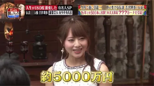 在参加综艺节目时,她大方承认自己一年收入最少时也有3000万日元,巅峰时有5000万日元。