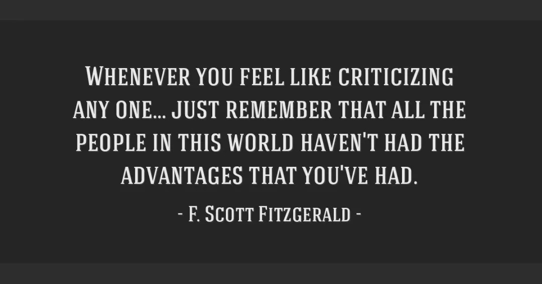 每逢你想要批评别人的时候,你要记住,这个世界上的所有人,并不是个个都有过你拥有的那些优越条件。