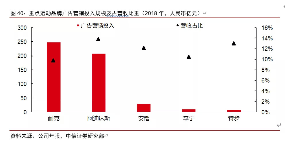 再者,对于综合运动品牌而言,国内品牌和国际龙头仍然在营销、研发的投入上存在数量级的差距。