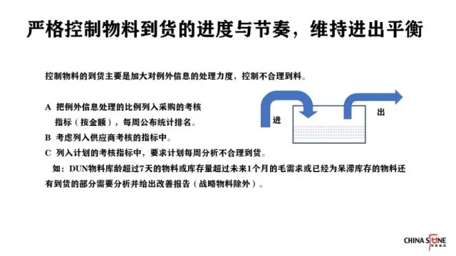 5.严格控制物料到货的进度和节奏,维持进出平衡