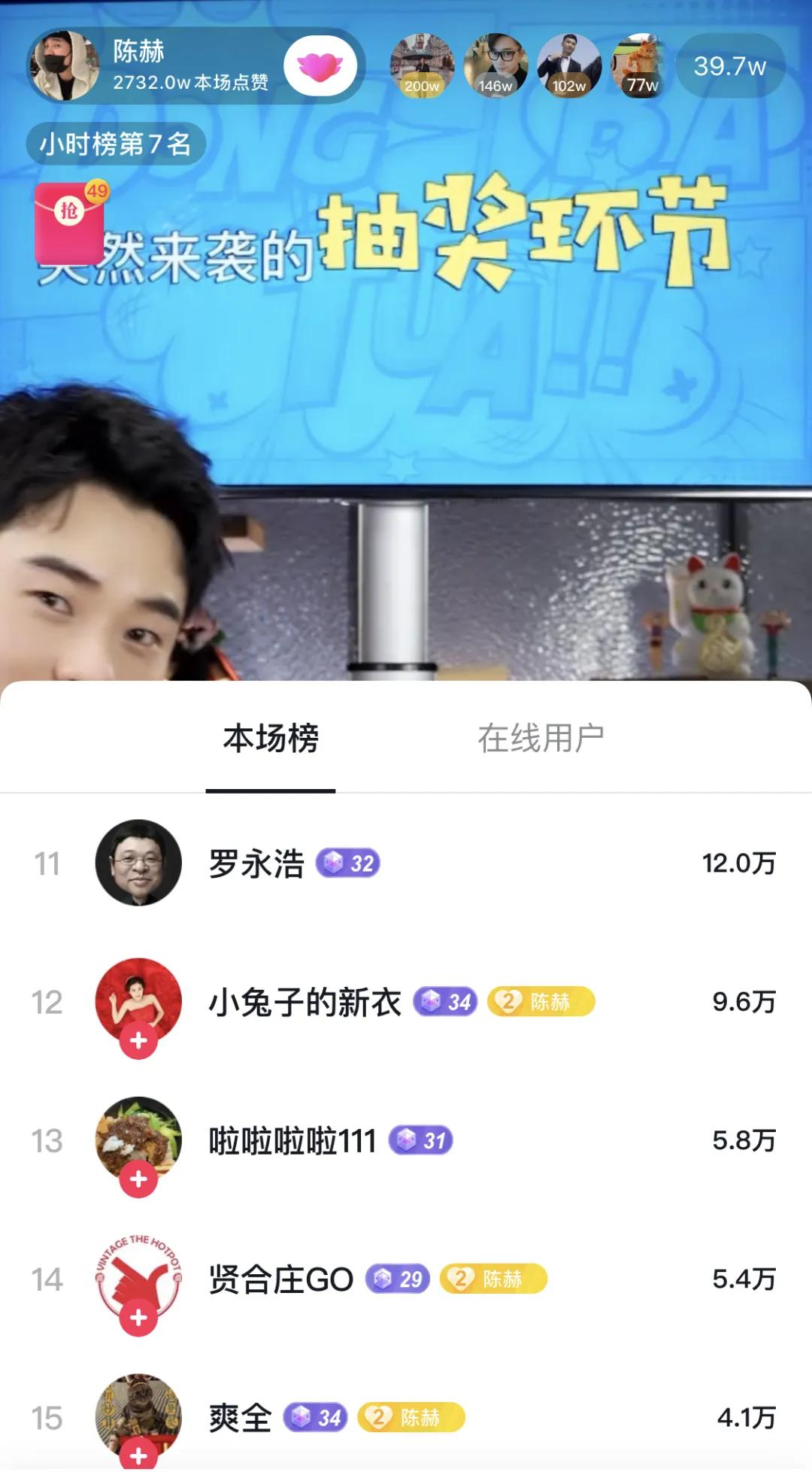 相比之下,明星直播不是新鲜事,而陈赫的优势在于作为娱乐明星,在大众层面具有更大的影响力。老罗可以说服公司老板们下单跑步机,却很难吸引从小看《爱情公寓》长大的00后。