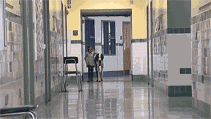 然而这些工具依旧显得多余,每当同学们兴冲冲地跑到体育馆上体育课,Bella最多只能坐在一旁默默地看,身边是冷冰冰的拐杖。可即便只能坐着看,即便拄着拐棍一瘸一拐走过去会耗尽她的力气,她还是忍不住要过去,因为总比一个人孤零零坐在教室里好。
