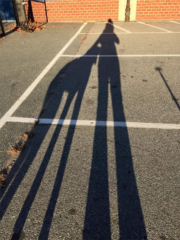 站起来后,斜阳拉出影子,