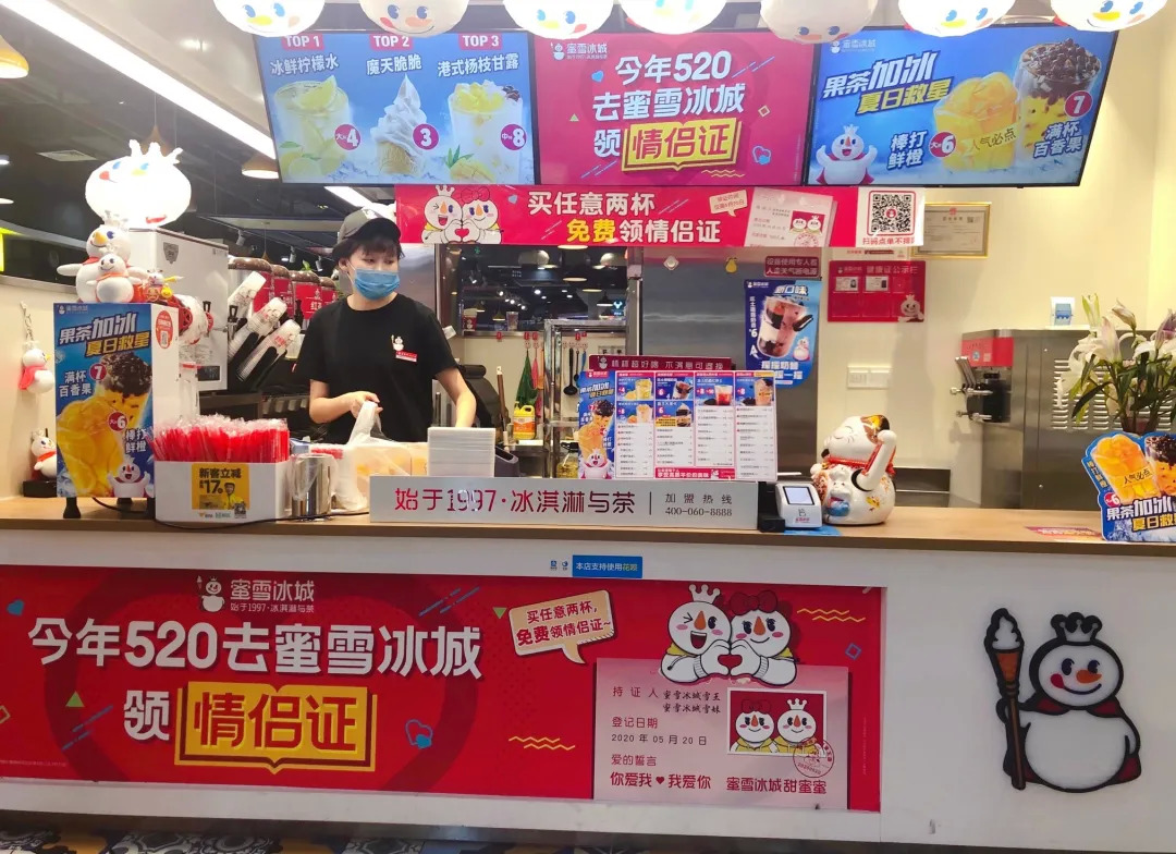 今年520,蜜雪冰城推出了领情侣证的活动。活动参与方式很简单:顾客购买两杯饮品就可以领取蜜雪冰城颁发的情侣证。