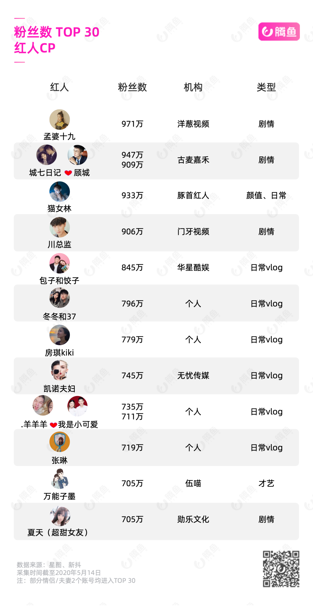 尽管单纯以粉丝数量来衡量,他们没有能够进入情侣KOL TOP 30名单。