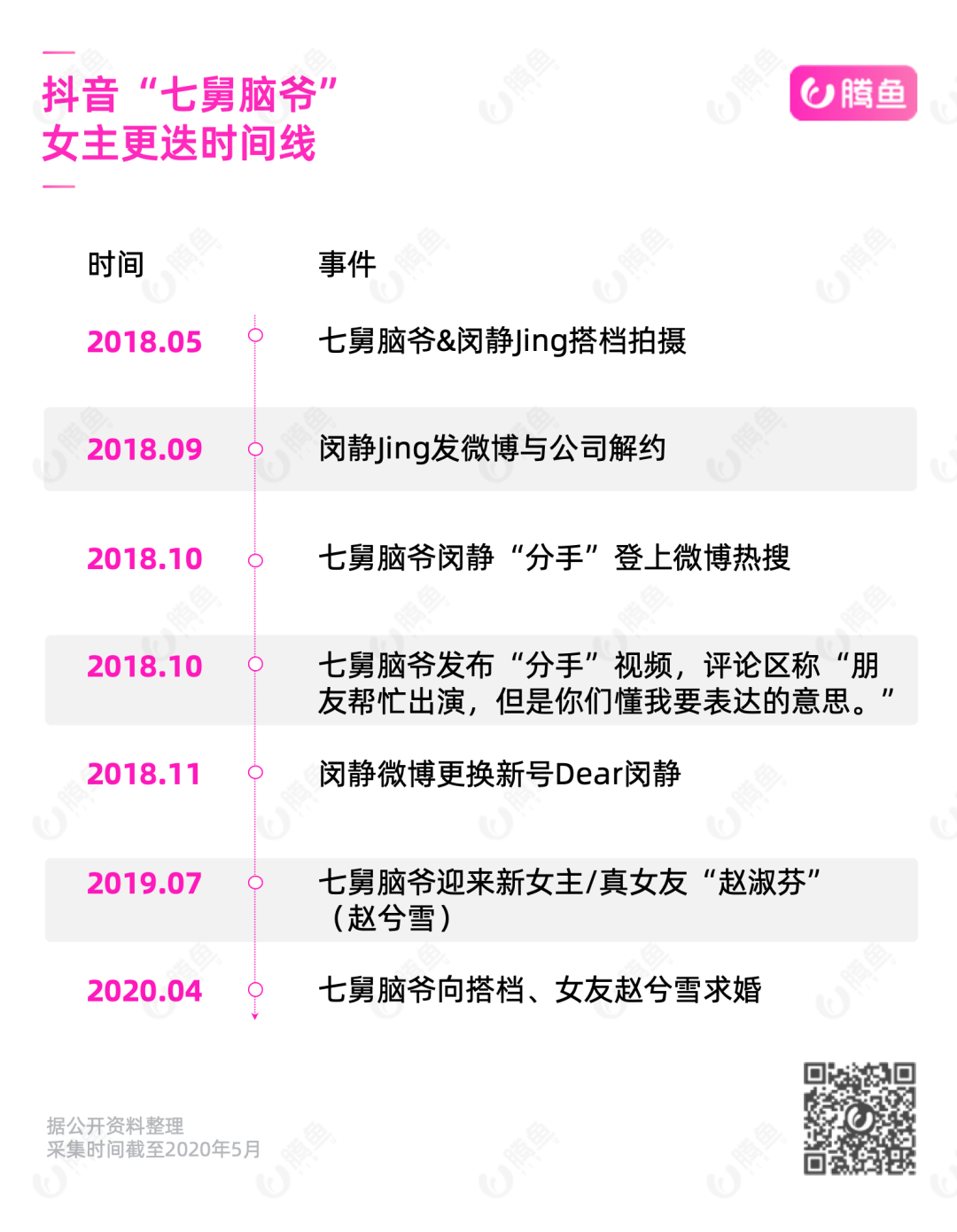 2018年10月,抖音头部红人“七舅脑爷”的剧情女主角“闵静Jing”与公司散伙,这一消息最高登上微博热搜榜第16名,在榜时间长达21小时。