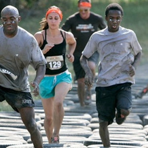 强悍泥人赛:10 到12英里的障碍和泥浆跑,不计时,基于团队挑战的设计是为了帮参赛者建立友情,也设计了一英里的孩子比赛