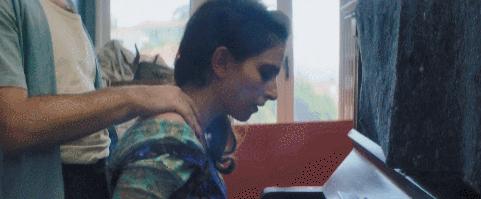 妹妹尤丽狄茜,在母亲和姐姐清理餐具的时候,忘我地弹起她的钢琴,丝毫不在意家中的烟火气,宛若在音乐厅中独奏一般闲适自然。