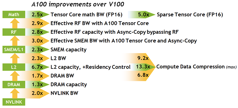 GA100架构:内存容量更大、带宽更快