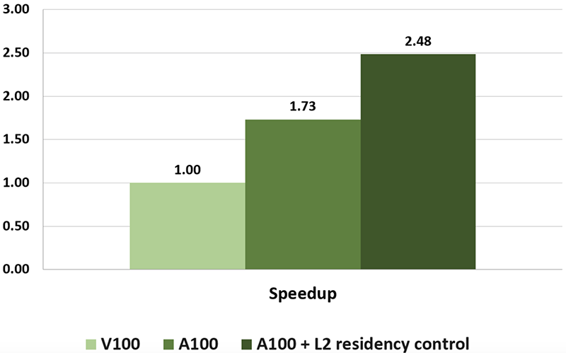 A100 L2 cache可提供的读取带宽是V100的2.3倍,因而能以比从HBM2内存读写高得多的速度缓存和重复访问更大的数据集和模型。L2 cache residency control被用于优化容量利用率,可以管理数据以保存或从缓存中删除数据。