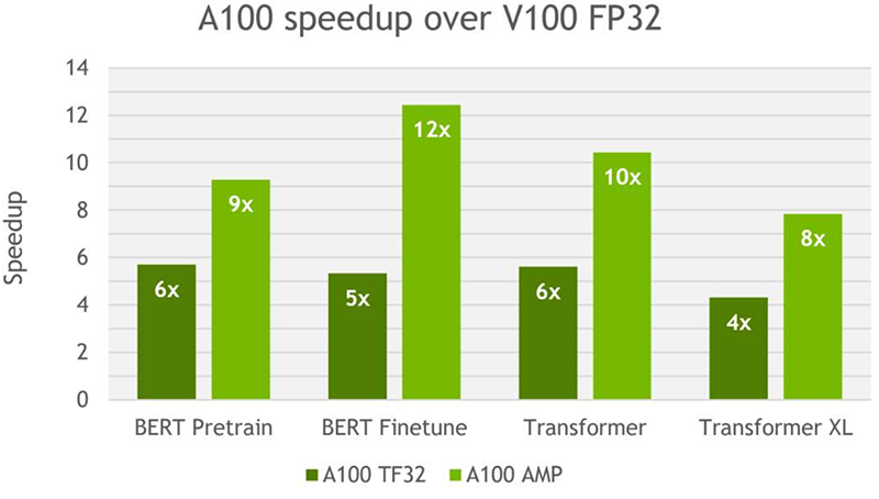 NVIDIA正与开发AI框架的开源社区合作,致力于使TF32成为A100 GPU上的默认训练模式。