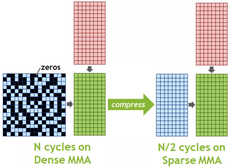 (3)结构化稀疏:进一步将AI推理性能提升2倍。