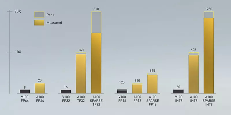 ▲A100 vs V100峰值性能