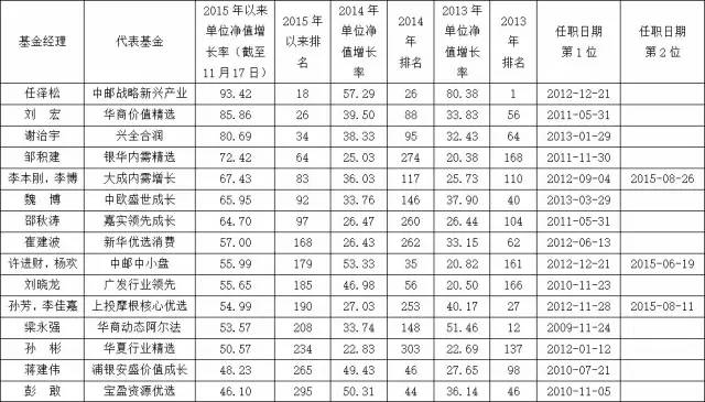 黑马年年有,今年特别多。不过,小散们还是买这些白马基金经理管理的基金吧。2016快要来了,任泽松们继续加油吧!