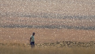 今年年初,索马里、埃塞俄比亚、厄立特里亚、肯尼亚等东非国家已经历了一轮蝗灾之苦。联合国已在2月发出警告,该地区有2000万人的粮食安全受蝗灾影响。