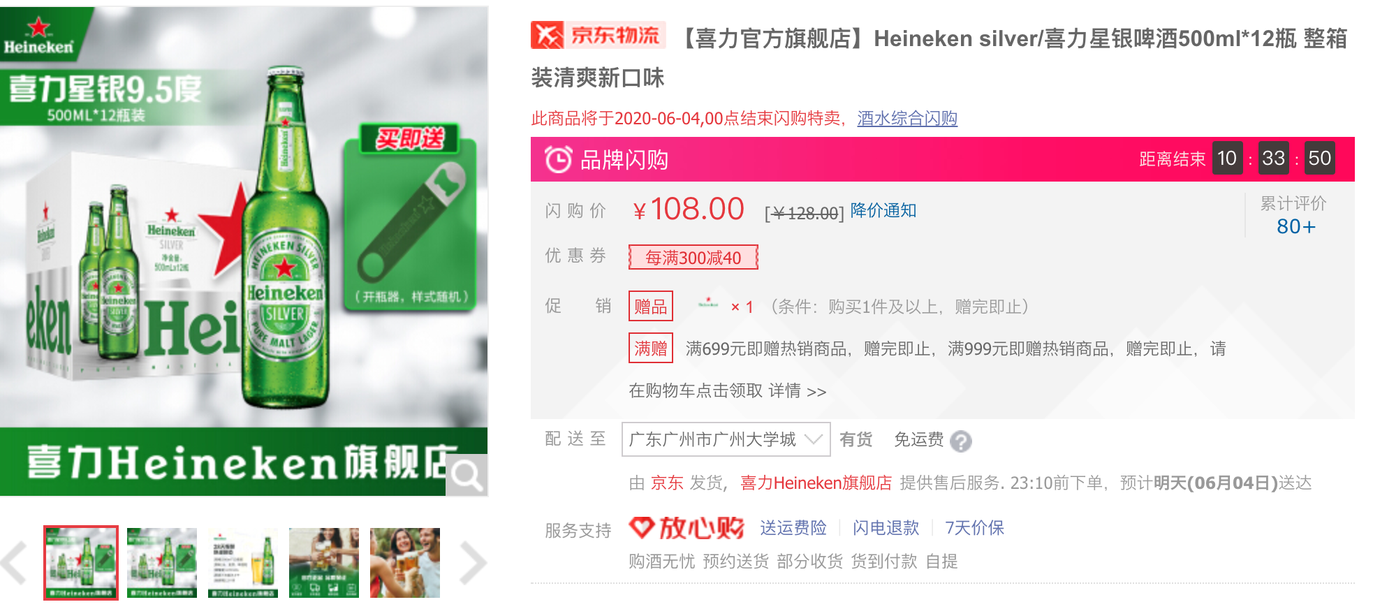 新品喜力星银今年五月初上线,强调面向年轻群体、定位高端,目前其在喜力京东官方旗舰店的单价为9元/瓶(500ml)。