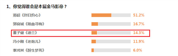 有人可能会觉得他就是来打个酱油的,但是网上的一项调查显示,他来势汹汹,还是夺得影帝的一大热门