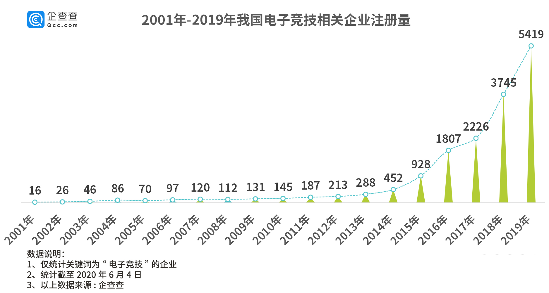 21世纪初,我国的电竞行业几乎是一片空白,仅有几百家企业涉猎电子竞技这个冷门的行业;2003年,中国电竞就被国家接受认可为正式体育运动项目,然而2004年的一纸禁令使电竞陷入停滞缓慢发展阶段;虽然2005年,李晓峰夺冠吸引了资本进入电竞这块蛮荒之地,但我国的电竞企业数量还是起起伏伏。