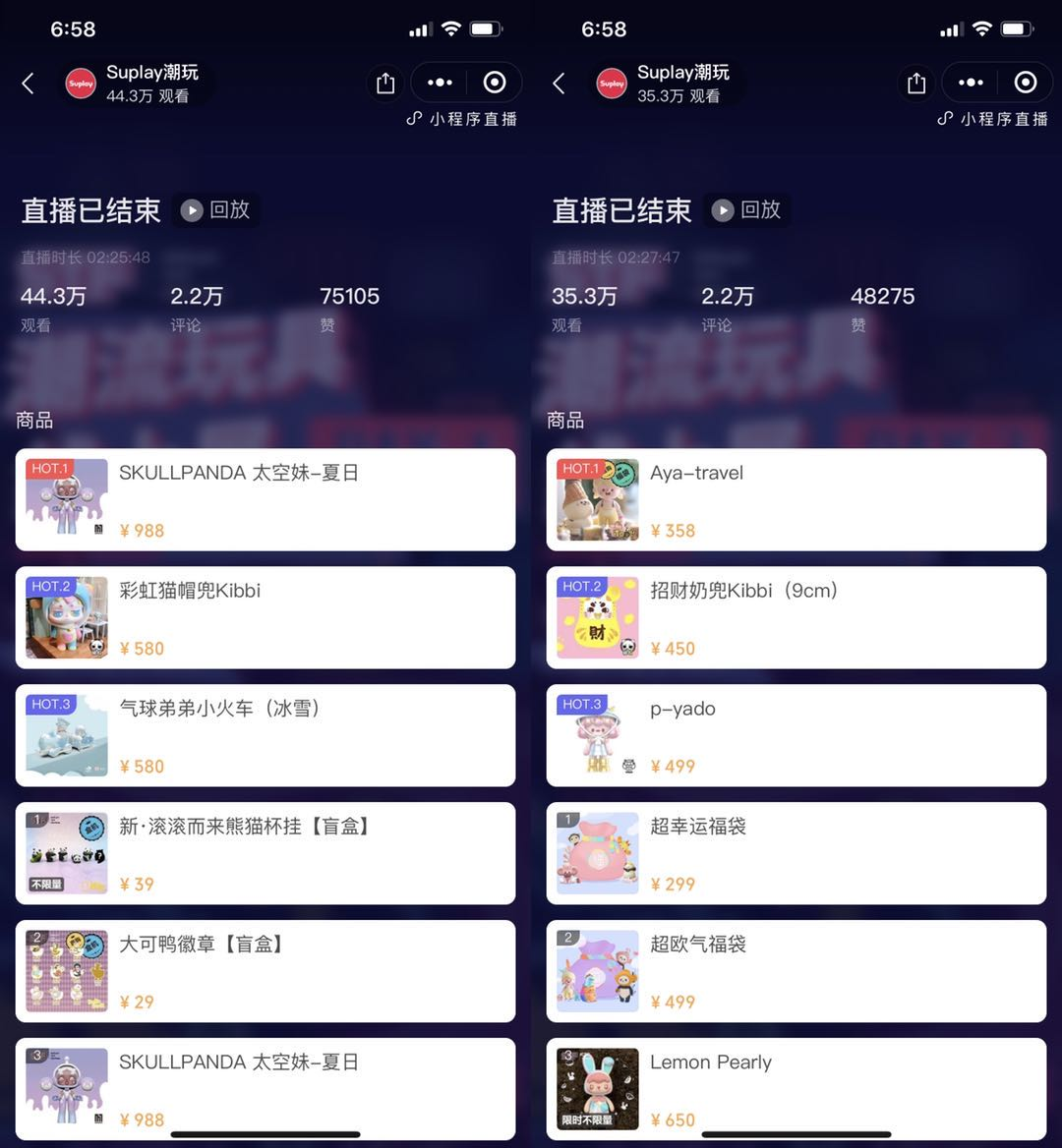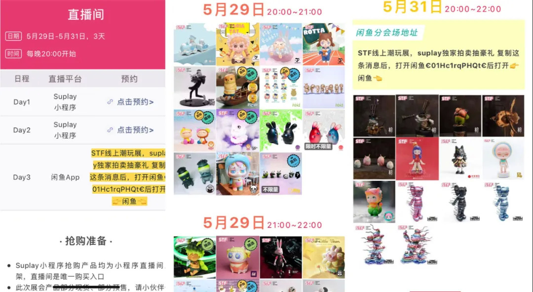 Suplay方面还透露,在刚刚结束的5月,线上直播举办的STF潮流玩具线上展(Suplay Toy Festival),共有80+国内外设计师品牌参展,130多款新品潮玩在Suplay的小程序直播间独家发售或独家首发,展会销售金额超300万,总观看人次超80万。