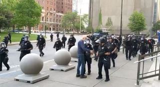 据布法罗当地广播电台WBFO拍摄的视频,周四晚宵禁期间,警方在尼亚加拉广场对抗议者进行清场。75岁的古吉诺(Martin Gugino)走向全副武装的防暴警察,试图与警察交谈。