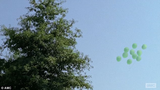 绿色气球:Alexandria里的人抬头看到了Enid和Glenn放的气球。
