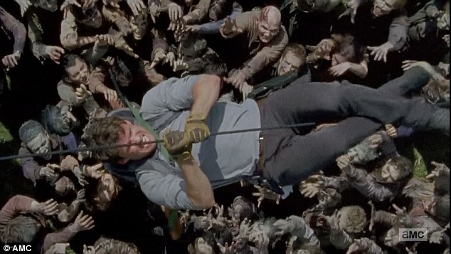 千钧一发:超高人气角色Glenn被尸群包围。