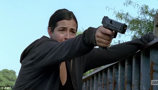 枪口对头:Enid掏出一把枪对准Glenn。
