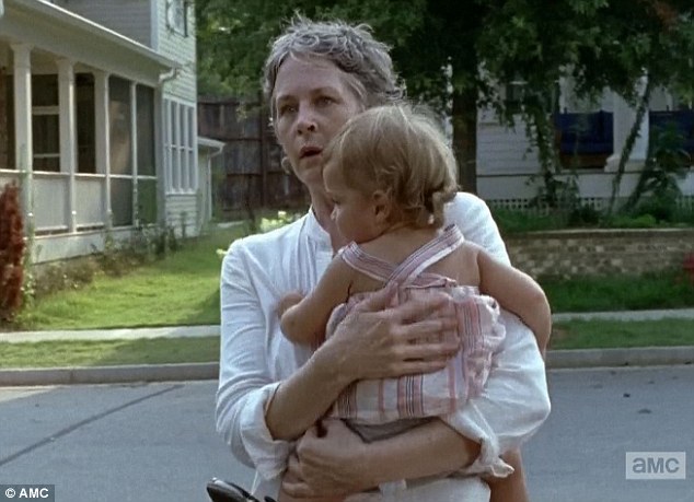 跟踪之中:Carol抱着宝宝监视着Morgan。