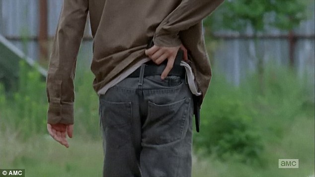 奇怪的关系:Ron拿着一把枪和偷来的子弹尾随Carl。