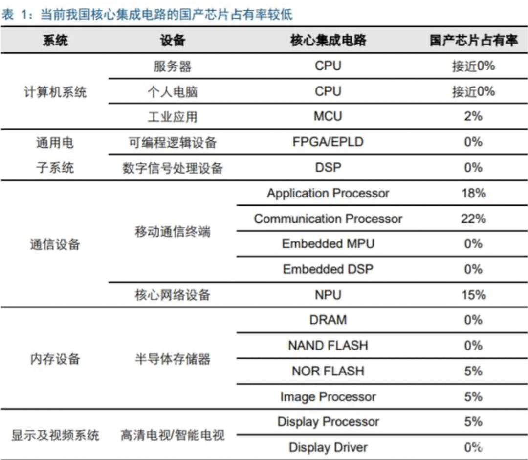 从图表可以看出,芯片、操作系统、数据库、存储等基础软件硬件方面领域自给率较低,产业发展受制于人。