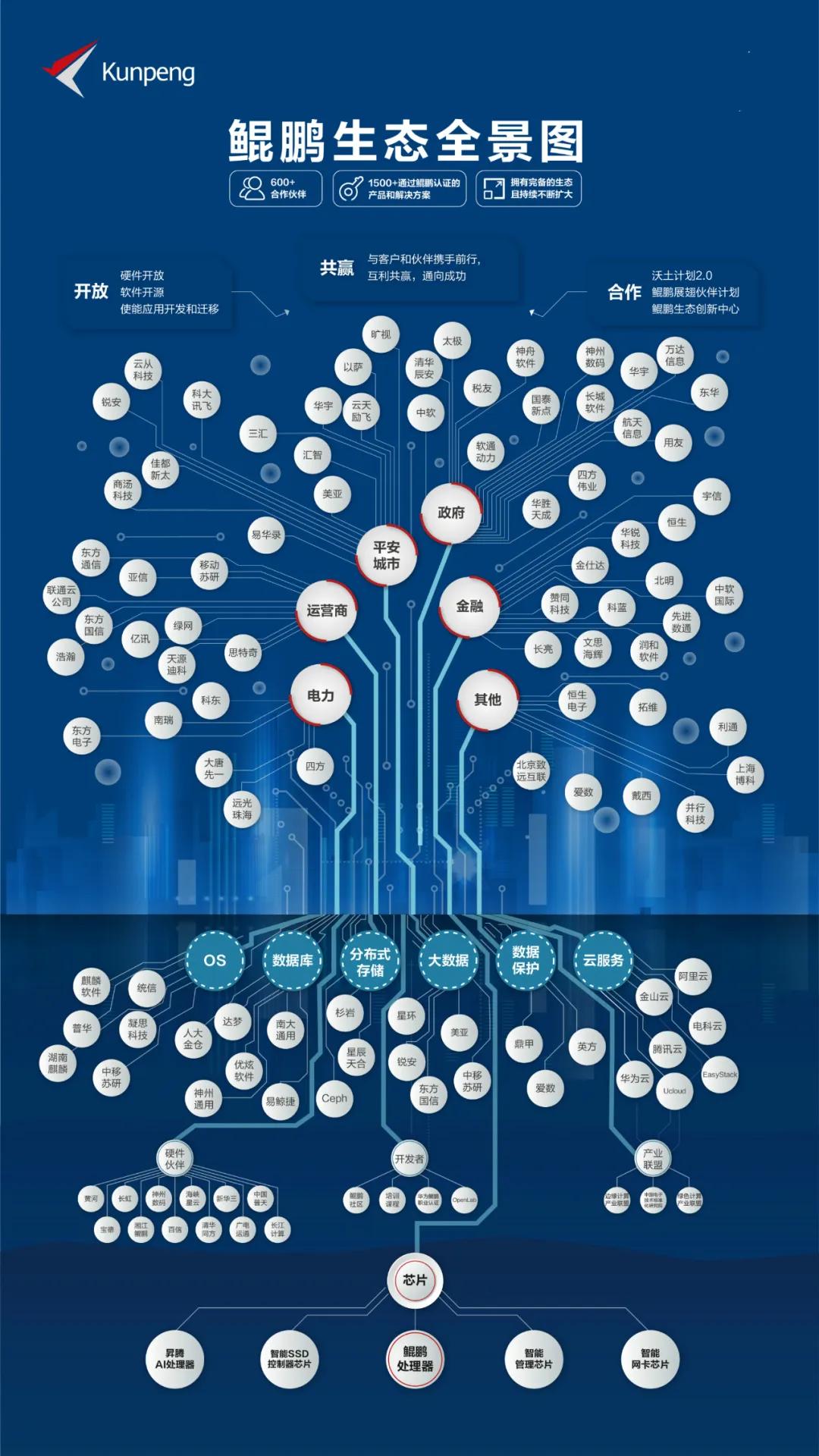 如今,鲲鹏生态圈已经初步成型:600+合作伙伴、1500+通过鲲鹏认证的产品和解决方案,且在持续不断扩大。