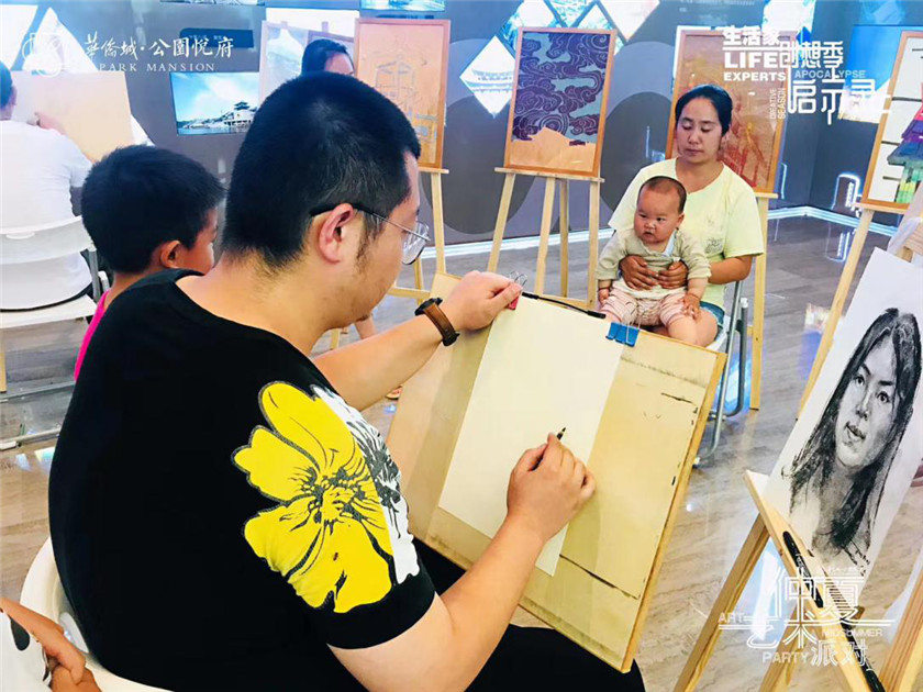仲夏艺术派对上,除了鲜花点缀外,还有Art Space品牌旗下的艺术家在现场作画,为业主描绘自画像,带大家一同领略艺术的奥秘。