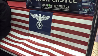 刷纽约地铁早就成了大公司惯用的营销方式,可是亚马逊最近的广告让人们都目瞪口呆——42街接驳线的车厢座位上,竟然刷满了“纳粹”和“日本帝国”的旗帜。