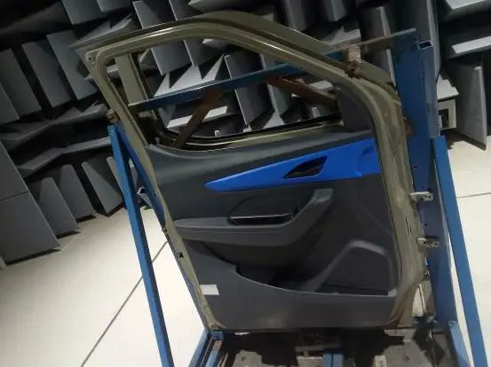 它的测试方法简单来说就是将车门固定在刚性工装台架上,施加标准的车身级激励路谱或者采集的路谱信号,来判断车门的噪音情况。