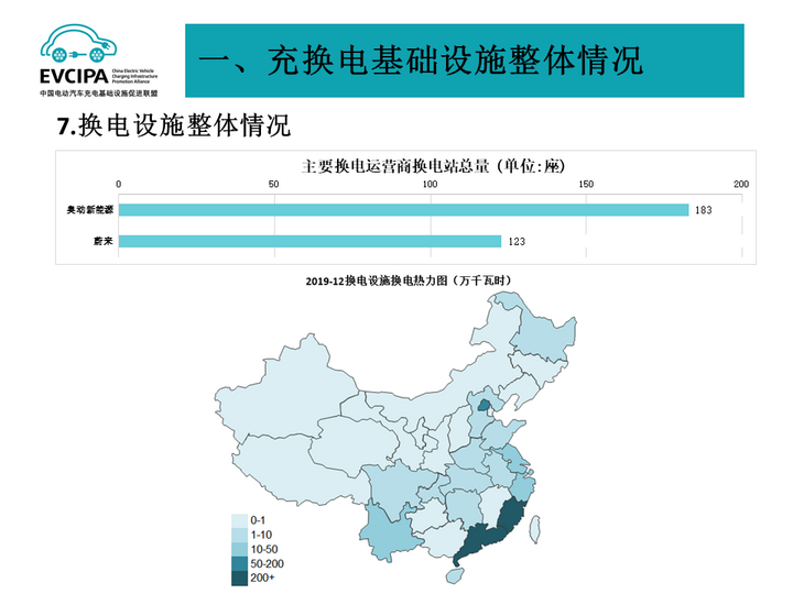 来自中国电动汽车充电基础设施促进联盟(EVCIPA)的数据透露:截至2019年12月,全国公共充电桩和私人充电桩总计保有量为121.9万座,换电站保有量总计306座。