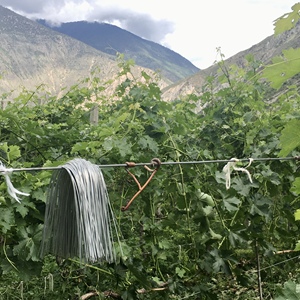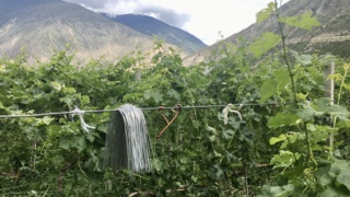云南省迪庆藏族自治州德钦县云岭村梅里冰酒冰葡萄基地,地处梅里雪山与澜沧江交汇的干热河谷,海拔2300-3000米,充足的阳光、巨大的昼夜温差、疏松的砂石土壤以及雪山冰川融水,使得这里的条件适合种植赤霞珠葡萄,酿造冰红葡萄酒。