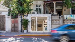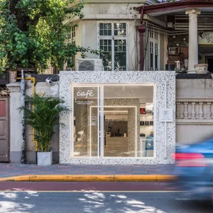 门头的白底水磨石框,与周围的建筑形成鲜明的反差,像一个“礼物盒”。外观的时尚感,让人路过都想进去瞅瞅。
