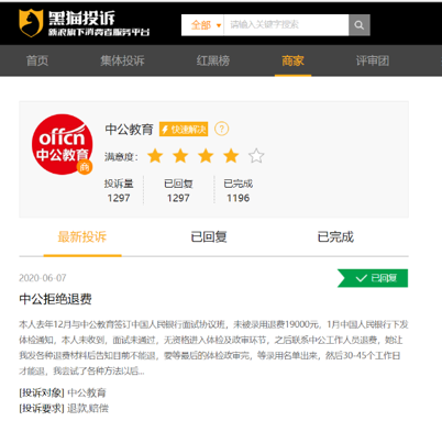 对中公教育诸如此类的投诉,在各大平台上数量众多,在此不一一列举。对于学员退费难的种种问题,蓝鲸教育就相关情况联系中公教育寻求其官方回应。截至发稿时,中公教育并未回复。