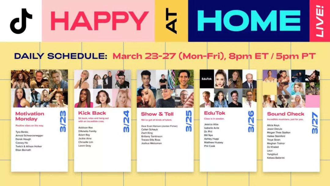 同时,TikTok还邀请了Tyra Banks、Bill Nye等名人每晚做客TikTok直播间分享各自的生活、职场经验。