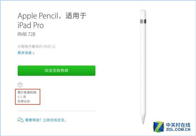 与Smart Keyboard一样,11月11日iPad Pro开卖当天下单的Apple Pencil还需要1到2周才能发货,iPad Pro则只需要等待1天,甚至可以直接去当地的直营店拿到现货。而目前苹果中国官网的Apple Pencil,预计发货时间竟然仍需等待4到5周以后。